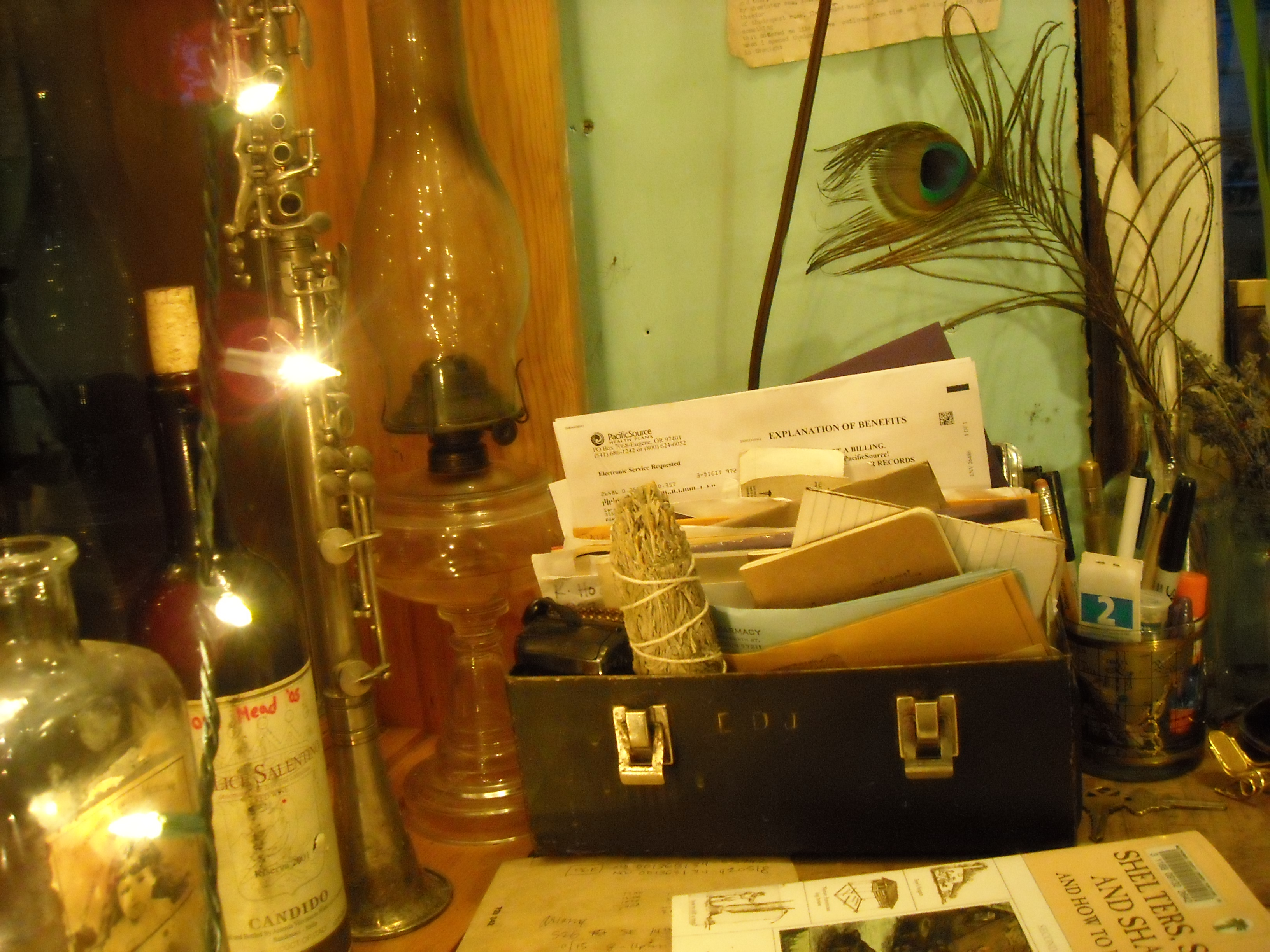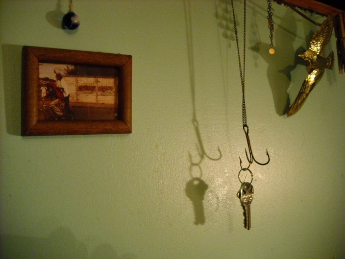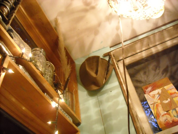 If there’s one thing I like to take pictures of, it’s the gently-lit shacks that some of my friends get to live in. Here is t-bird’s. We met today in the afternoon. T-bird bought me a tamale and a tiny persimmon in the bustle of the farmer’s market and then we went to her shack for tea, where we talked about romance, space heaters, and pleasure trips to Greece.