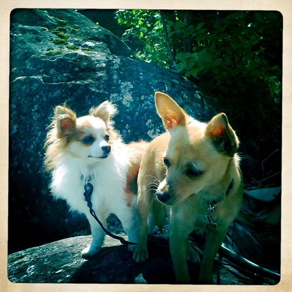 We returned to our campsite late in the evening, lowered our sore bodies into the flooded, broth-colored stream, and then put on every item of clothing we had brought so that we could crouch, for a few moments, in the thick, mosquito-filled air, and stir the gluten-free noodles in our camping pot. The mosquitoes enveloped Kinnikinnick and she bit at them, twitching and shaking her small body, but Sonny’s coat was long enough that he was impenetrable, and he watched us quietly in a rectangle of evening light, his small paws crossed contentedly. As we ate our salty noodles on the grass, the mosquitoes frantically biting at the backs of our hands, we saw that Sonny was, at last, tired. And that night he slept like the sweet, lovely little being that we had always imagined him to be- cuddled up in Finn’s sleeping bag or on top of mine, his little rooster-tail curled blanket-like around his torso, eyelids stretched peacefully over his huge, bulbous eyes. The next day we hiked the four miles out, and Sonny was so contented that he was sweet and agreeable for the rest of the trip, sleeping or letting himself be pet, squinting up at one or the other of us with his big, wet-brown eyes as if he was the most gentle dog in the world. And, when we returned to Portland, we were only admonished slightly for letting him run until his paws bled.
