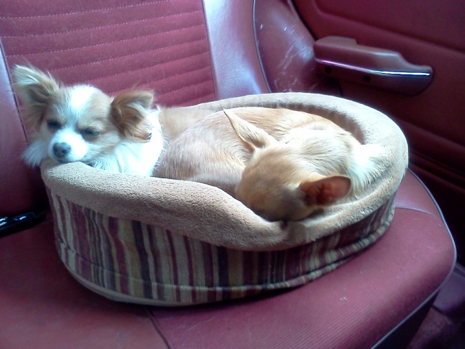 HE’S SO CUTE! Said Seamus. Kinnikinnick clung, gecko-like, to the top of the front seat, and eyed the new dog suspiciously. Emy slept in the back, unalarmed. I touched the dog’s fur, looked at his small white teeth. The truth was, he wasn’t cute. Kinnikinnick was cute- small and brown and alert. Emy was cute- with her half-moon ears and good-smelling fur. This dog, however, was something else entirely- if there was a word to describe this dog, it did not exist in English.