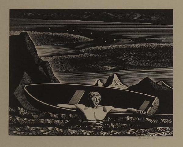 In the middle of the sea, you cling to your boat. It’s a small, narrow, wooden boat and you cling to it. You’re lying curled in the bottom between the wooden benches, your fingers dug into the peeling wood. Now and then you raise your head and look over the lip of the boat at the sea. Every time you do this, the sea stretches even farther. Every time you do this, you are a little more disconnected from the land.