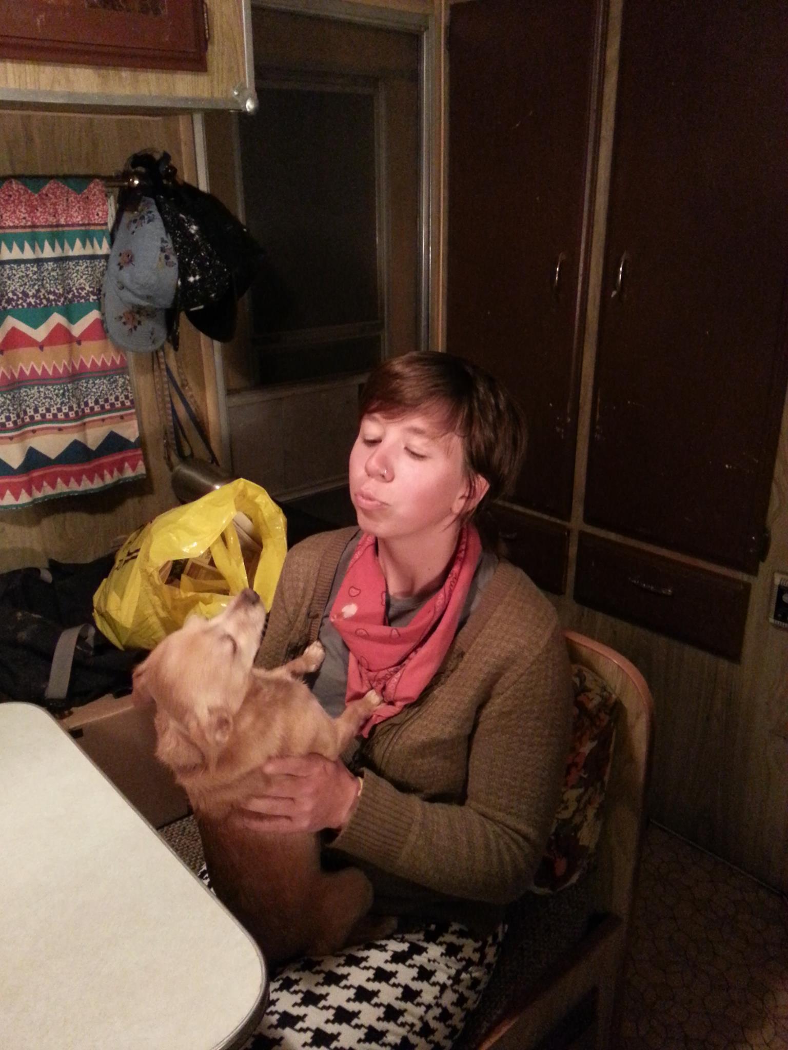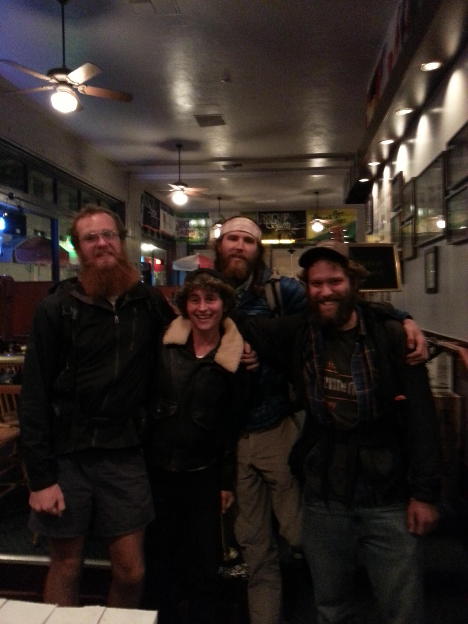 I meet up with Ben and Angela and Thyra at a bar down the road, walking there in the cold night, and we talk about the trail. I haven’t seen them since the Desert, but we laughed a lot together and they live in Portland and it is so good to see them now. They walk me back to my trailer and hang out, petting Kinnikinnick- Ben and Thyra want to live in a trailer, too.
