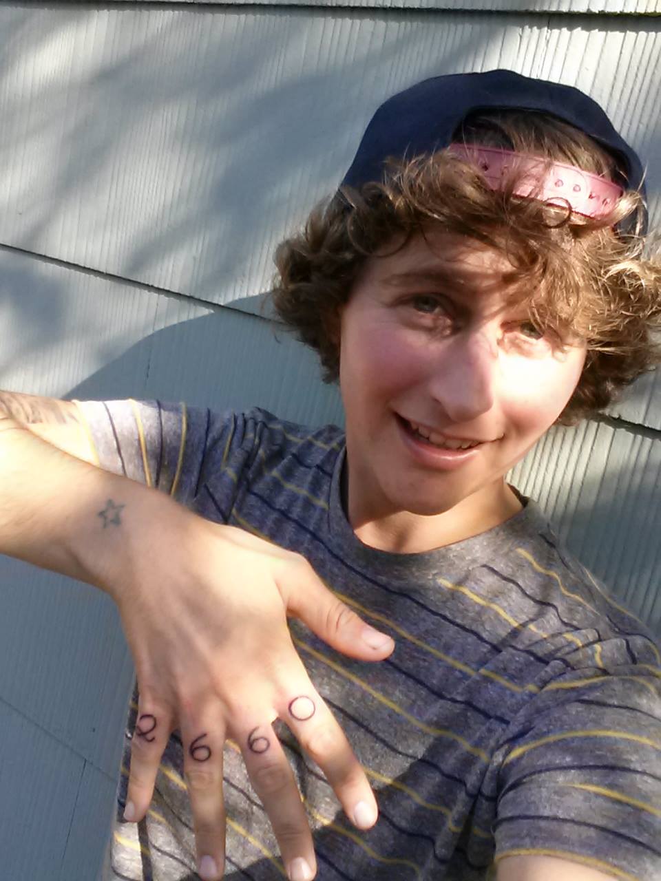 I hate the knuckle tattoo after I get it. As I get older I’m beginning to have post-tattoo remorse, which is something I never experienced in my teens and early twenties. Now I sit in my trailer in the afternoon and stare at the tattoo, feeling completely and irrevocably marked. I really like my hands, they’re my favorite part of me. The numbers on my knuckles seem dark and heavy, and they’re just so… there. Like misshapen rings I can’t take off. I have a feeling, though, that I’ll grow to love these numbers, they way I grew to love the killdeer tattoo on the back of my left hand, which is a reference to one of my favorite books- The Man Who Fell in Love With the Moon.