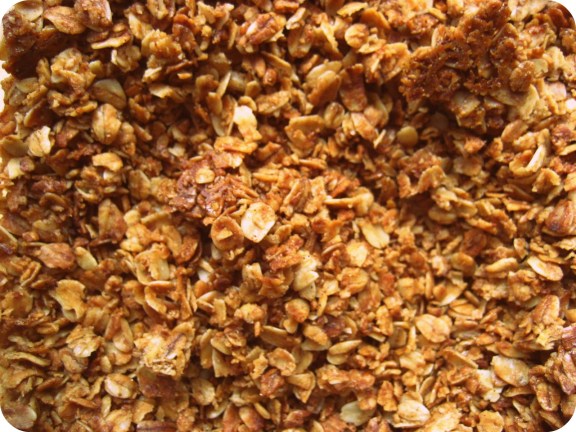When buying granola, I look at the amount of sugar per 100 grams of food on the nutrition label. If there are more than 10 grams of sugar per 100 grams of food, it is considered to be “high in sugar” and I know that it’ll make me crash. Believe it or not, in a good bulk department there are usually one or two varieties of granola that aren’t high in sugar, and I would buy big bags of these. I was still careful to not eat too much granola at once, tho, and to eat it with almonds, because there isn’t enough fat and protein in granola, by itself, to stabilize my blood sugar. Granola is not gluten free as the oat-squashing machines are, I believe, dusted with wheat flour, but I’m not so sensitive that I notice gluten in really small amounts, so it was worth it. Because granola tastes good.