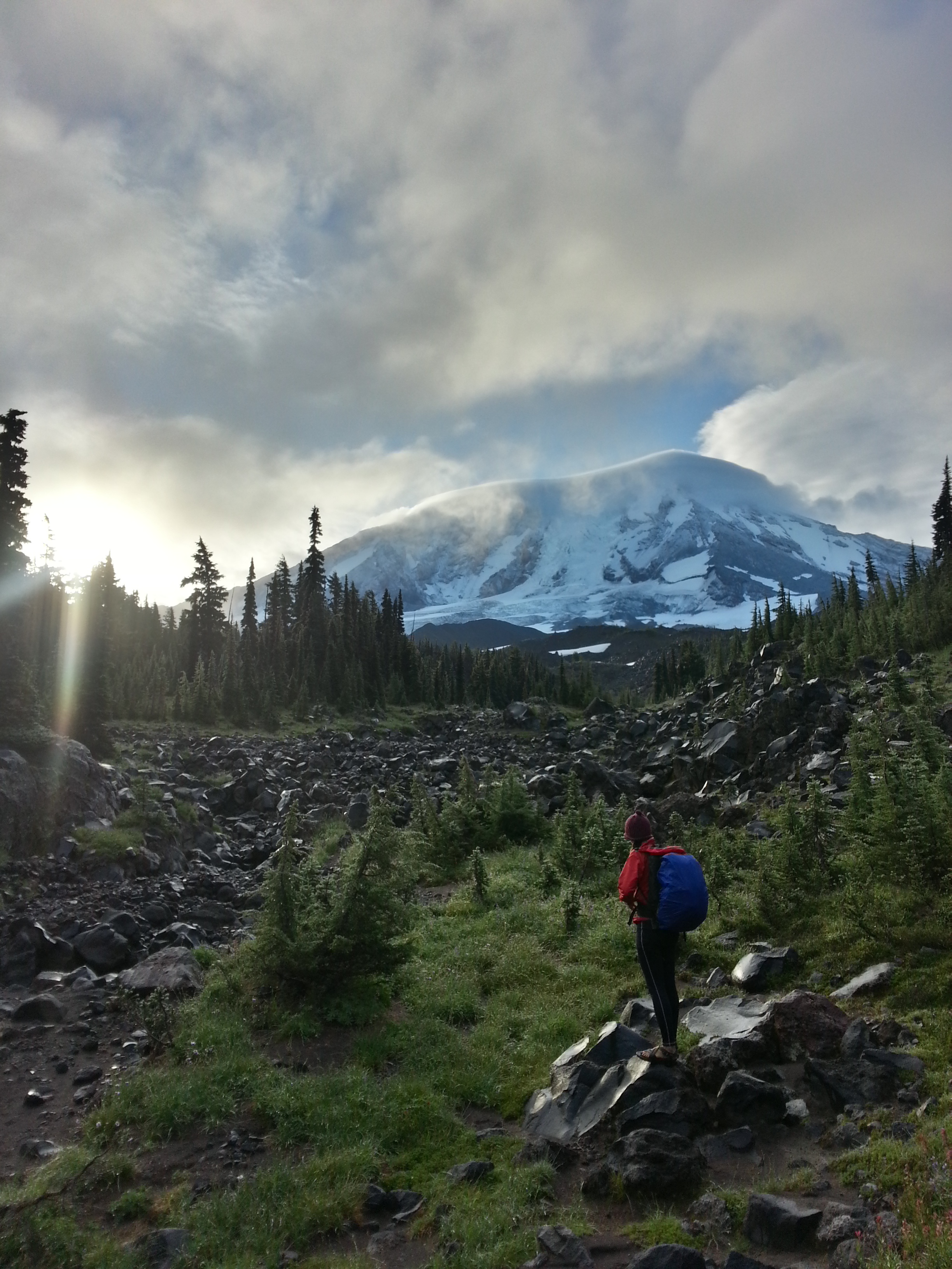 We’re at the convenience store at White Pass, Washington, and my heart is racing from caffeine. Hiker’s packs are lined up on the bench outside the store, which sells pizza and honeydew melon and has a cluster of metal tables where hikers can hang out while they charge their phones. It’s noon. I peek inside the store, but I don’t see anybody that I know or recognize- just a few bearded strangers, wolfing down corndogs. I didn’t get to meet very many other thru-hikers this year, as I raced north to Canada to beat the rain, so I’ve decided to hike this section from White Pass to Cascade Locks south, two weeks after finishing my thru-hike. Actually it was Orbit and Redbeard’s idea, a couple of thru-hikers I met on the trail last year. Redbeard lives in Seattle and is a rafting guide although once, back when he could tolerate it, he had a desk job editing film. Orbit is an unemployed barista, just moved to Portland, with dreams of going to school for astrophysics. She’s also one hike away from her triple crown.