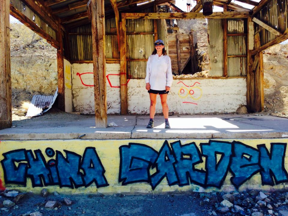 “How did these goldfish get here?” I say. In the shade of the big tree (what kind of tree? I don’t know.) is a slab of broken concrete- the remnants of a cabin? Nearby is another crumbling structure. Someone’s tagged it with China Garden Spring in big letters.