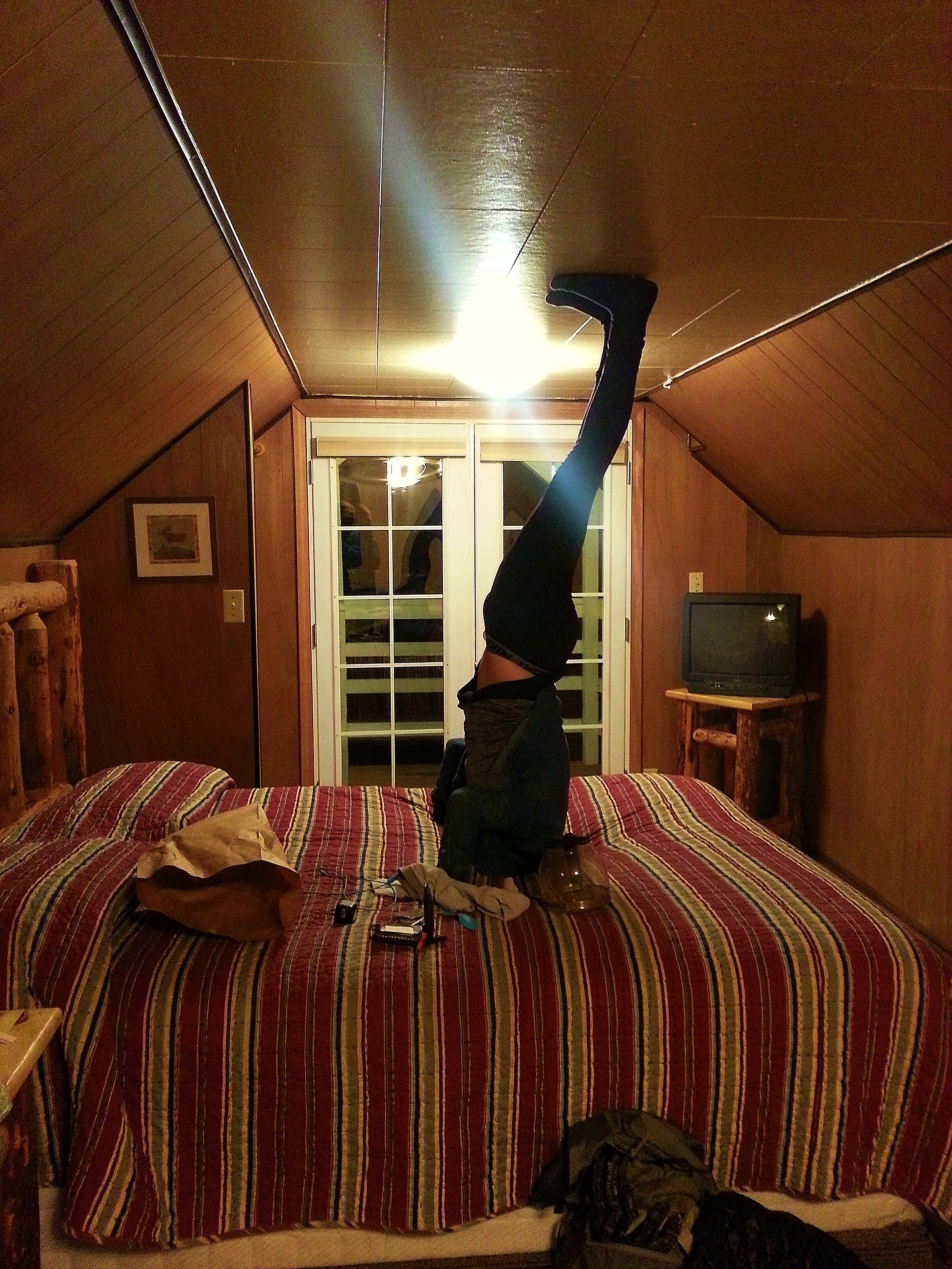 Our cabin was huge and had a kitchen and three beds. All that room for activities made us ecstatic and Lia and I did Fake Yoga on every available surface.