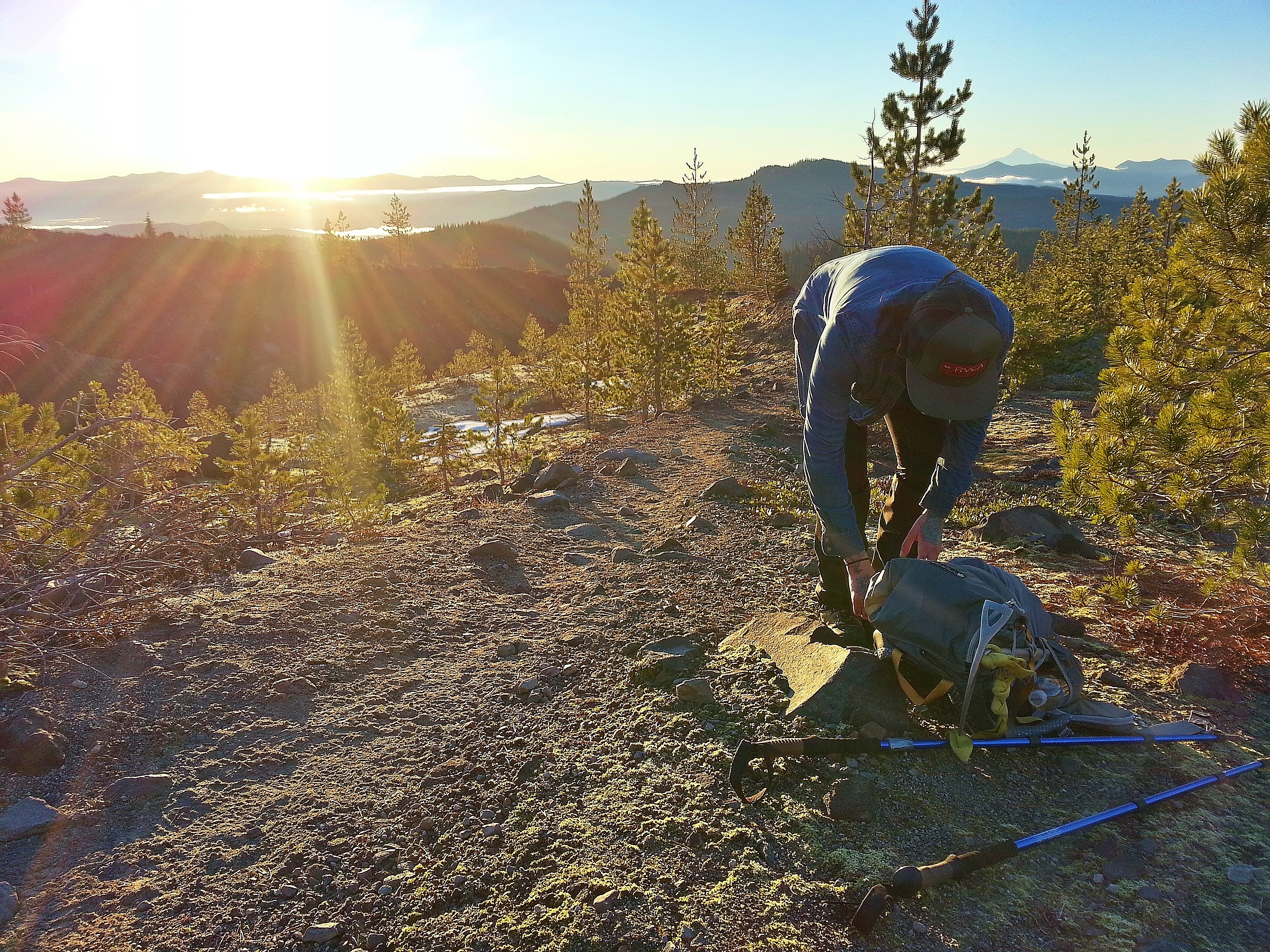 The sun was just rising as Lia and I started up the trail. Around a wooded bend we were greeted with the most epic alpenglow on the smooth face of Saint Helens, and we both pretty much came in our pants. By the time we got our cameras out the aplenglow was gone but the sun was there, dripping over the opposite horizon. The air was warming and the sky was clear and wide. It was going to be a very good day.