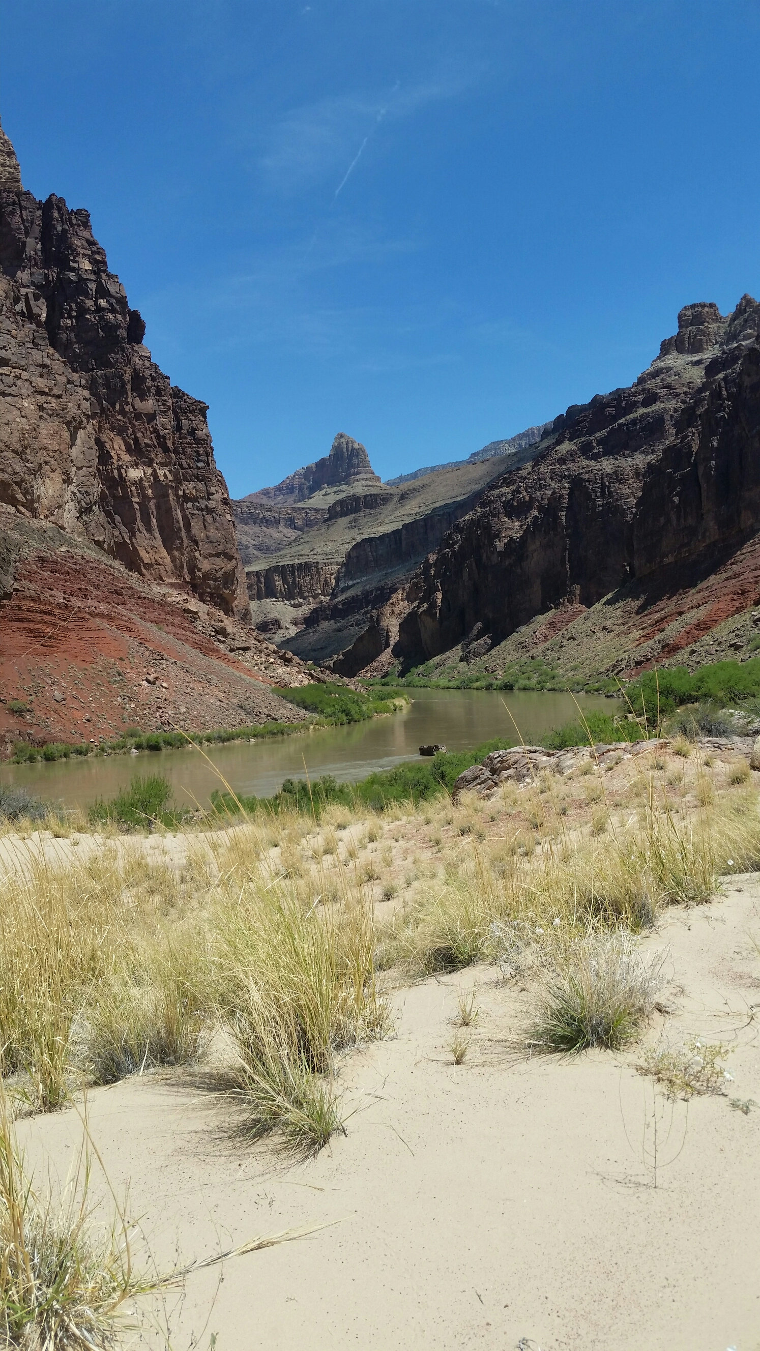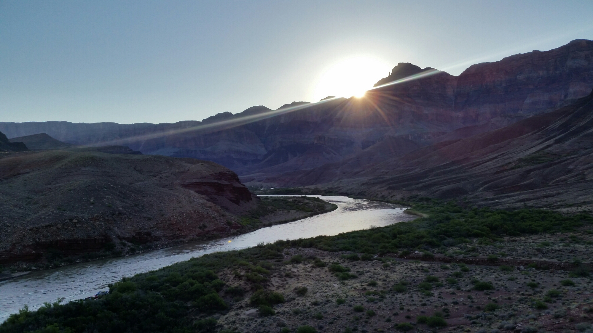 We camp on a rock shelf above Hance creek. The clear water here tastes incredible, so much better than the murky green Colorado. We are so cooked/exhausted from the sun that we barely talk, just eat our dinners and watch the squirrels scurry too and fro, eyeing us and probably plotting to steal our food in the night. It’s balmy and clear but mosquitos are a thing, so we have to set up the tent, and then a wind appears and begins to flap it. I don’t care, though. I put in my earplugs. So tired.