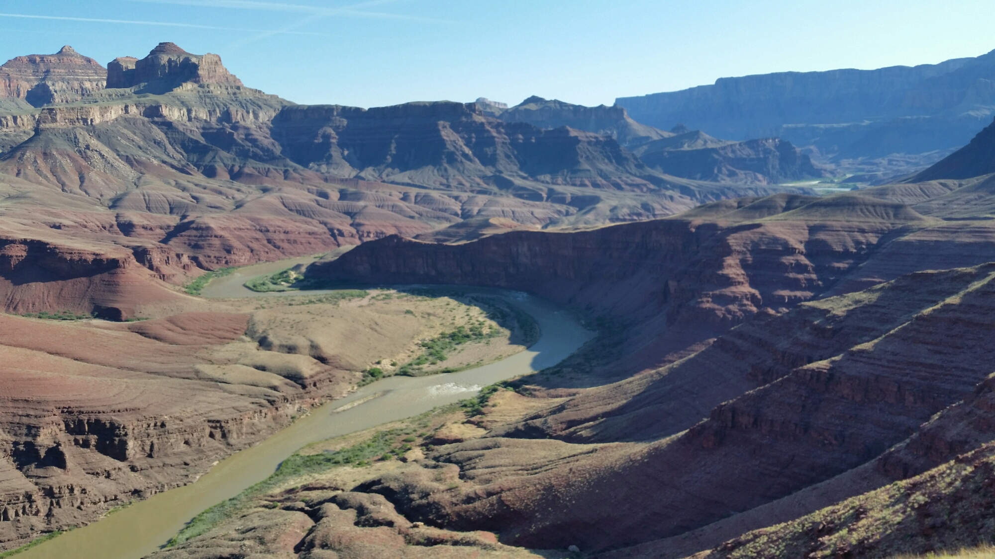 When I planned food for this section, I figured we’d be hiking 20-ish mile days. LOL! The Hayduke route through the Grand Canyon, so far, has been the hardest hiking of the entire trail. One cool thing about the grand canyon is that if one is planning to resupply at the South Rim village (we are), one gets to choose which trail to take up to the rim from the Hayduke. One of these trails, the Grand View trail, which goes up Horseshoe Mesa, starts close to the creek where we want to camp tonight. This trail is super steep and, as far as I can tell from the map, super fucking cool. If we take this trail, it’ll put us on the South Rim tomorrow. That’s about as much food as we have.
