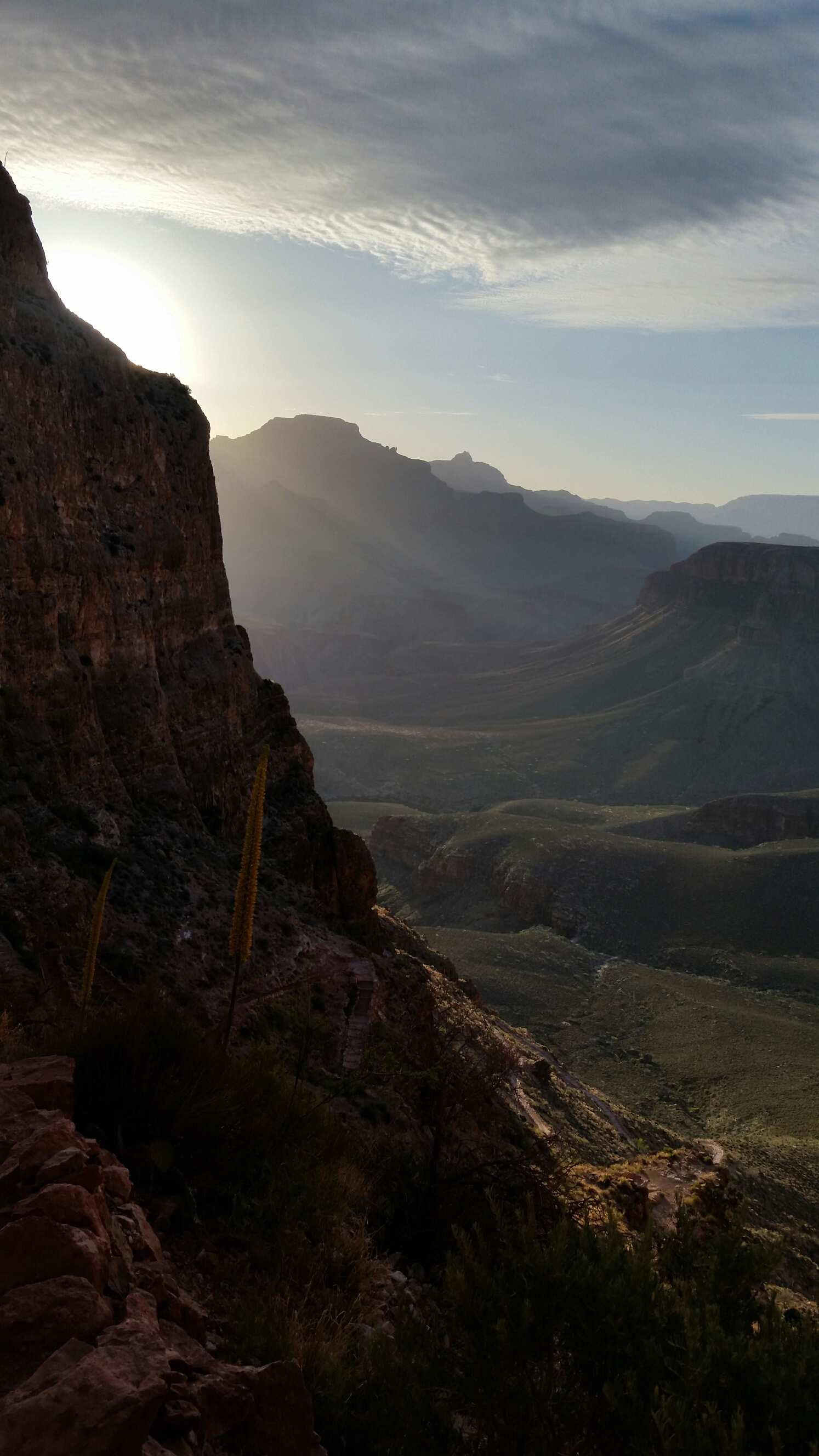 Everything up to this point has felt pretty easy, exhilarating even- but now I’m switchbacking 6,000 feet up the South Kaibab trail and I am so. fucking. tired. Plus it’s pitch black and a cold wind picks up and slams us with irregular gusts, blowing my hat off my head and making me recoil from the dark abyss beyond the edge of the trail. Presently the moon rises heavy and orange, and casts the massive canyon walls in a cold silvery light. It grows colder still, and I put on my puffy. I keep having to stop and rest the knee. Ahead I can see the little spot of Dan’s headlamp, bobbing. My headlamp bobs in response. Up and up and up we go, into the infinite blackness. Switching back and switching back. I remember the peanut MnMs I found on the trail in the afternoon. There were five of them, so brightly colored against the dirt, and I wiped the dust off of two and ate them. The MnMs were warm from the sun, and they tasted incredible. I focus on this thought. One more switchback disappears beneath my exhausted legs. I turn the corner to find more blackness. I’m dizzy with weariness. Woosh! Woosh! Goes the wind, in the dark. I clutch my hat. I turn on a podcast, and hold the phone up to my ear so that I can hear it. The podcast is about meditation as it relates to healing and physical health. Another switchback disappears. Ahead the small spot of Dan’s headlamp has stopped- he’s waiting for me. What a treasure. How did I find such a treasure of a human being to date. Except, people are wonderful. It’s letting oneself be loved that is the hardest part. I guess I’m finally maturing into the person I always wanted to be. They say that the ultimate lesson we can ever hope to learn, as humans, is how to love and be loved.