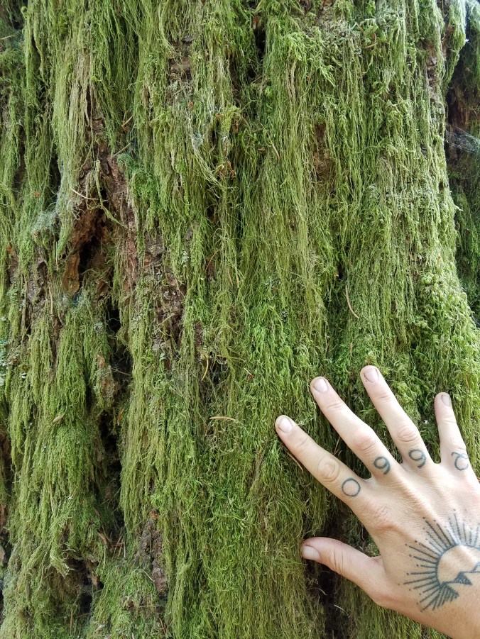 We drop back down and camp in the warm humid low-elevation mossjungle next to a creek and I pitch my bug net just-so beneath the devils club. 26 miles today. I do the full buttchafe care routine- soap and water (away from the stream), dry everything, vaseline, sleep with no pants on. I take my 40-minute euphoria ration post-dinner and before I fall asleep, laying on my sleeping pad where I am exactly perfectly comfortable, staring up at the bigleaf maples hung with lichen thinking about how good life can be.