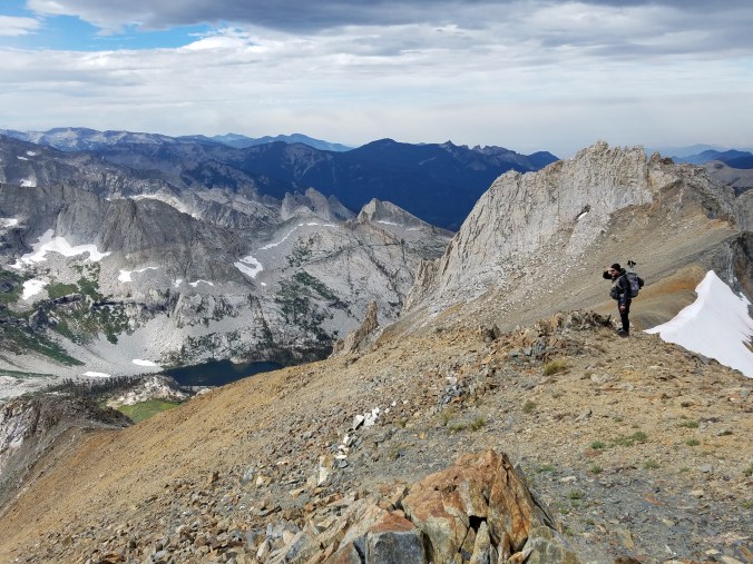 Descending off Copper Peak into the next drainage over is some steep-ass shit, shoes sliding on dirt-coated rock and here and there an embedded bit of talus to grip but not all the way or it’ll come loose from the mountain and tumble down onto your hiking partner.
