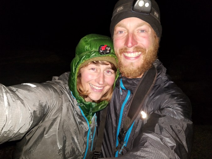 We only have a handful of miles left but these miles stretch out until they are everything, the entire world, and I feel empty inside, a shell of a human being propelling itself forward. And then we’re at a tiny footbridge and then the parkinglot, and still we have a mile and a half on pavement to get to the van, which is parked in the overflow parking down near Parchers resort. This 1.5 mile roadwalk is unbelievably long, the longest stretch of earth we’ve covered all day. We reach the van at midnight and climb inside. I’m too sick with hunger and dehydration to eat, too cold to ever be warm again. I force myself to eat some chips and put on extra layers and burrow into my sleeping bag until I stop shaking, relieved and elated and exhausted, grateful for this adventure to be over, and so grateful for it to have happened at all.