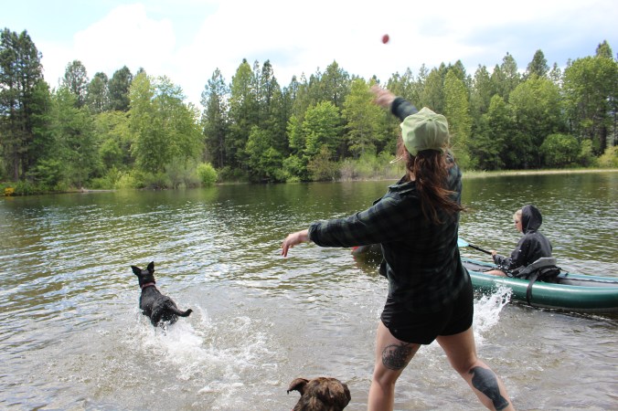 By and by we hand the boats off to our friends to paddle around in and make chicken sandwiches in the shade. This is a good life, I think, as I watch the dogs dive into the water after the ball, again.