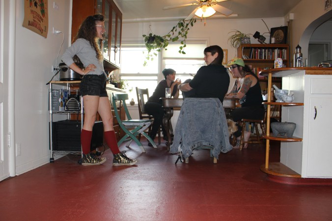 Sam is a herbalist and she has a room full of brown glass bottles with handwritten labels and Holly works in a greenhouse in the Applegate valley. The queer community in Southern Oregon is small and dispersed over a discouragingly large area and when I lived here I felt isolated and sad, but sometimes I visit and see my queer friends here living their peaceful country lives and I tell myself that maybe the dream is possible, maybe someday queers and other marginalized communities won’t be stuck in cities because that’s the only place they can concentrate at high enough numbers to feel safe and seen, maybe we can take back rural America and make it our own, even though rural America is less accessible as well as devoid of industry and western economies become more urban every year. I think of the lesbian separatist movement in the seventies and the land projects in southern Oregon left over from that. Dank forested acres that started out so full of hopes and dreams, women who built cabins and hauled water and planted gardens, trying to make a world in which they could be free. Eventually the dream fell apart and one couple would stay to hold it down in the cold fog of a mountaintop with a small marijuana grow and now those aging residents, many (but not all!) of whom are trans exclusionary, want nothing more than to pass on the dream to the younger generation of queers but it just doesn’t fit, the ideology has changed and besides no one wants to be isolated like that, and maybe they never did.