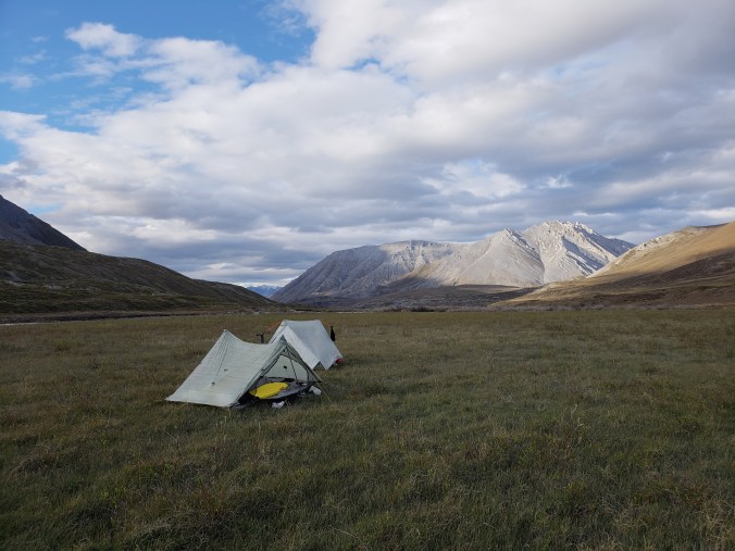 We camp on a small bench above the Kong on a flat mat of relatively dry tundra as a light rain begins to fall and I am so sleepy I can hardly stay awake long enough to make dinner before I’m cozy in my bag in the cool gentle grey and then I’m out.