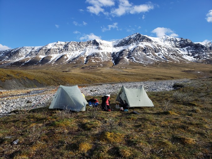 We camp on a windy bit of tundra just below the continental divide, next to a stream that is almost too silty to drink. We’re nine miles from our cache, 7.5 from where we’ll attempt to cross the formidable Sheenjek.
