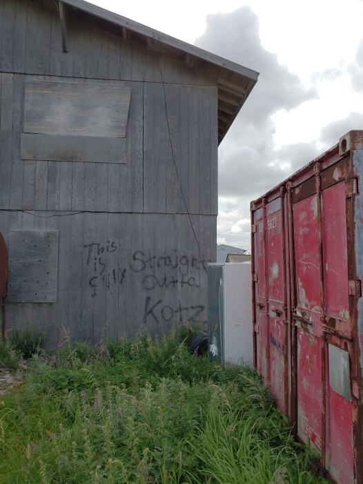 Kotzebue is a toy village, I decide from the plane. Colorful buildings in tidy rows on a splat of mud in the sea. On the ground a very real cab driver takes us across town, and I stare out the window at the mix of dilapidated log cabins, newer small houses surrounded in trash and broken snow machines, stark apartment buildings, and businesses that sell strange assortments of things.