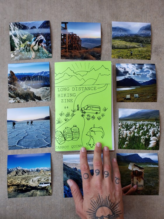 Long Distance Hiking Zine #4, the zine of my recent (and second!) thru-hike of the Lowest to Highest Route, as well as my adventures in the Alaskan Arctic this summer, is here!! 20k words, plus 10 prints of my photos from those trips. I already sold out of the 200 copies I usually print, so I’ve printed an extra 50 copies. As of this writing, I have 33 copies left! (I’ll update this number when they’re sold out.) I’m only shipping these zines through Wednesday, Nov 13- so if you want one this is your last chance to scoop one up! No international orders please.