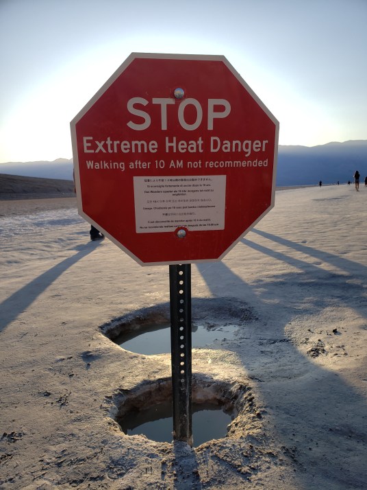 We take some group photos at the wooden Badwater Basin sign and then set out, walking into the desert to die.