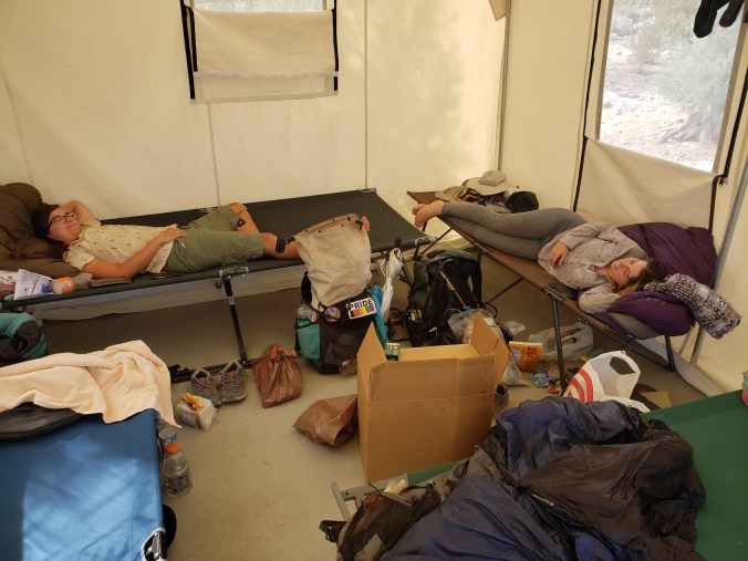 The day warms and we all nap on our cots in the wall tent, sweating a little in the heat. A single fly keeps landing on me, keeping me from actually sleeping. I stir and take an ibuprofen. I just hurt so bad all over. It’s hard to imagine right now, when my legs are this swollen and sore, but tomorrow I am going to feel better, and I’m going to drink cold coffee in the morning and I am going to be STOKED to hike.