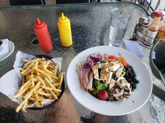 At the breakfast buffet I fill my plate with peeled hardboiled eggs and about a dozen sausage links, plus a bowl of dry fruit loops. I pour a cup of black coffee and sit on the deck of the restaurant and watch some sparrows fight over a single onion ring in the dirt. Oh shit, here comes a dove! Eight sparrows vs one dove, choose your fighter. In the end, a handful of sentient beings score a bit of onion ring each and everyone else gets none. Nature is both full of astonishing detail and blind, like a hand tossing neon skittles into the dark.