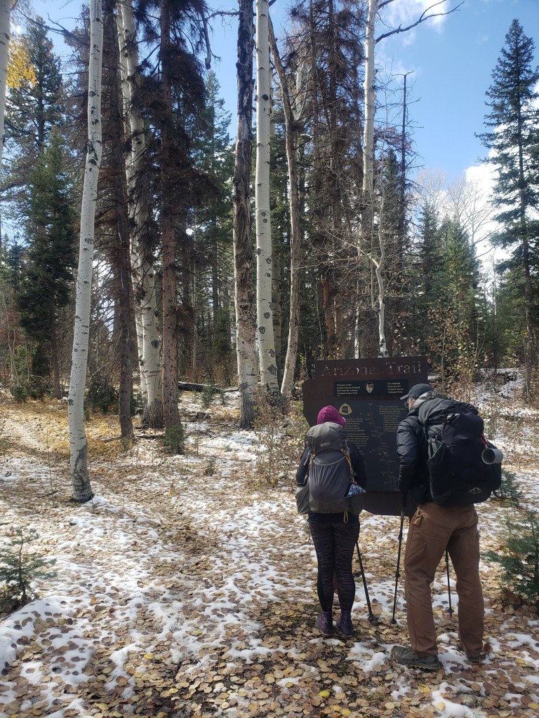The wind is still going at it this morning and it makes things extra cold so we’re hiking in all our layers, heads down, letting it chap our faces. We’re crossing lovely open meadows with patches of snow, like on a mountain but there’s no mountain, just the Kaibab plateau. And soon we’ll reach the inside-out mountains of the Grand Canyon! The brilliant thing today is that my pain is gone. No more super intense, trail-ending pain. Just regular pain. Regular pain I can do. Hell yeah! I don’t know why yesterday hurt so bad but now it’s over. I’m stoked!