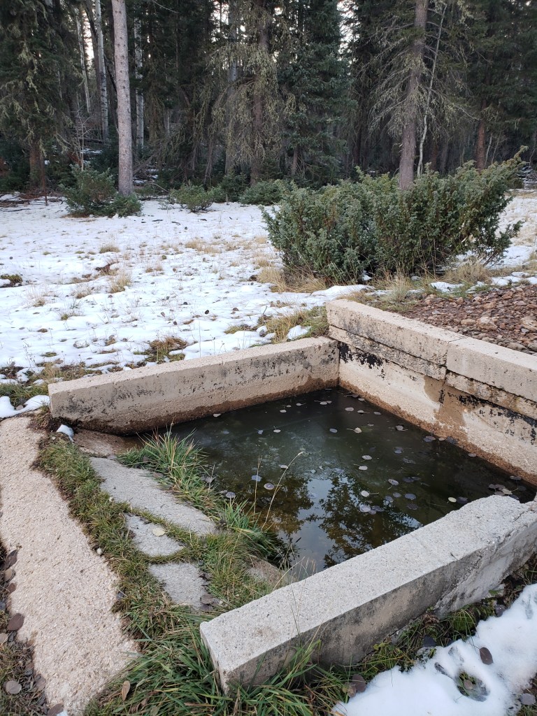 We find a beautiful aspen grove to camp in, next to a wildlife guzzler of clear water with a little ice crusted on top. It feels incredible to get in my sleeping bag. Upon foot tape removal I discover that a new, larger blister has grown beneath my original blister. I use my lighter to sterilize the scissors on my tiny swiss army knife and cut into the new blister, which explodes all over my sleeping bag. Dang. The moon rises and I say a prayer that my body magically heals in my sleep, and that tomorrow the pain is gone.