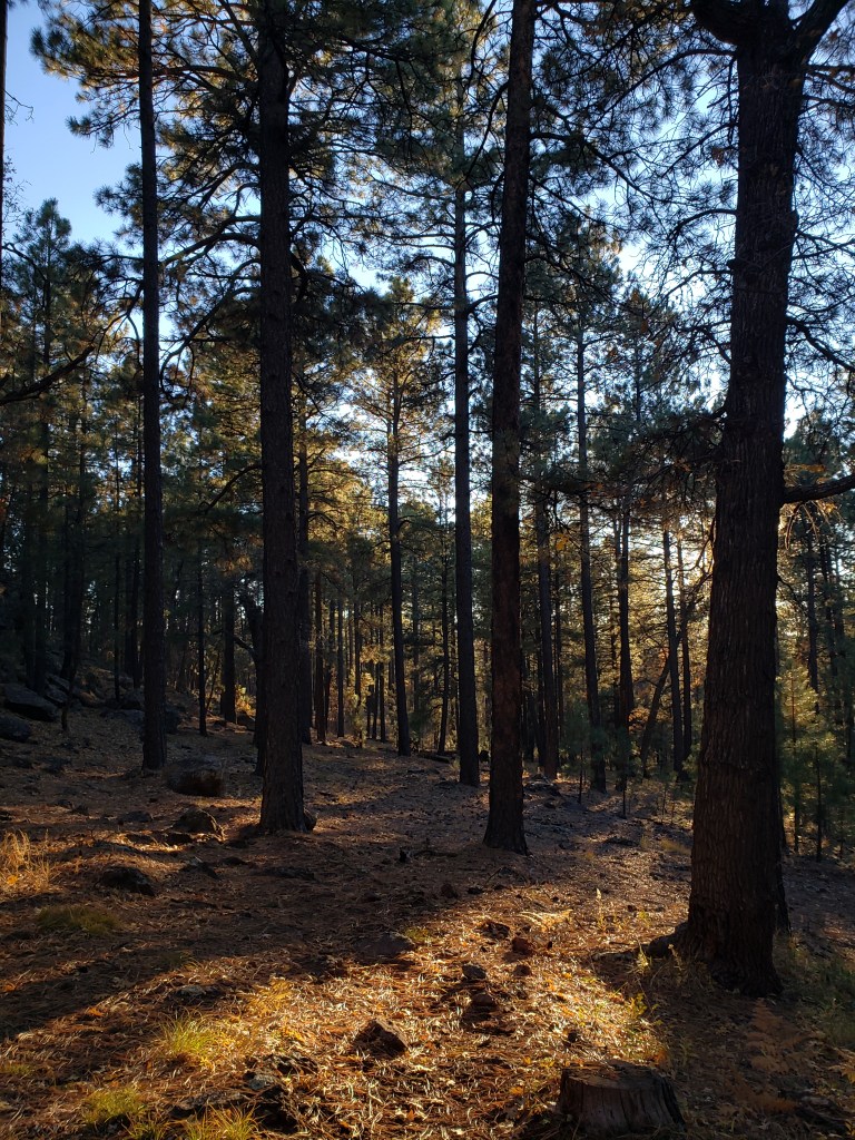 I’ve got a third of a liter of water to make it the ten miles to Mormon Lake, and then we find a stream- our first running stream! In all these endless miles of muddy cattle ponds! That apparently runs year round! And hilariously, isn’t even listed on our maps as a water source. Probably because the stream is at a campground that is listed as a water source, but the spigots were turned off here a few weeks ago. We’re at the tail end of things for sure. Working as hard as we can to get down off the colorado plateau, winter chasing us.