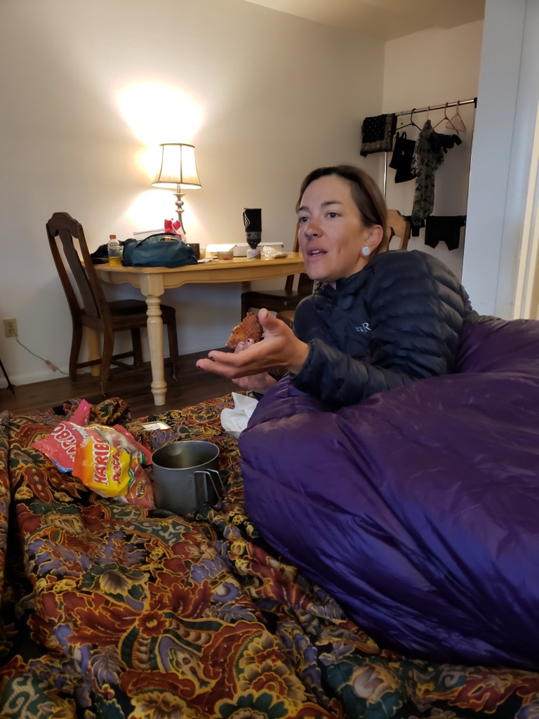 The mexican food next door is cheap, excellent, and my iced tea comes in a huge styrofoam cup. God I love southern arizona! Across the street is Bosa donuts, “best donuts in Arizona”, and I remember I went there on the Mogollon Rim Trail and they were SO GOOD. Gluten makes me (temporarily) ill and usually I avoid it but sometimes you’ve got an itch that just needs to be scratched, you know? I buy a dozen. “I got us a dozen donuts!!” I text Laura. Six donuts later I am in bed, comatose. Laura has arrived, absolutely sun roasted, and she’s regaling us with tales from her bonkers speed hike through this section, which is apparently the roughest section of the whole AZT- one day she took a wrong junction and did eight extra miles, for “at least a forty mile day”. She hiked until eleven p.m. Her blisters were horrible. She ran out of water, and by the time she reached the highway she wanted to die.