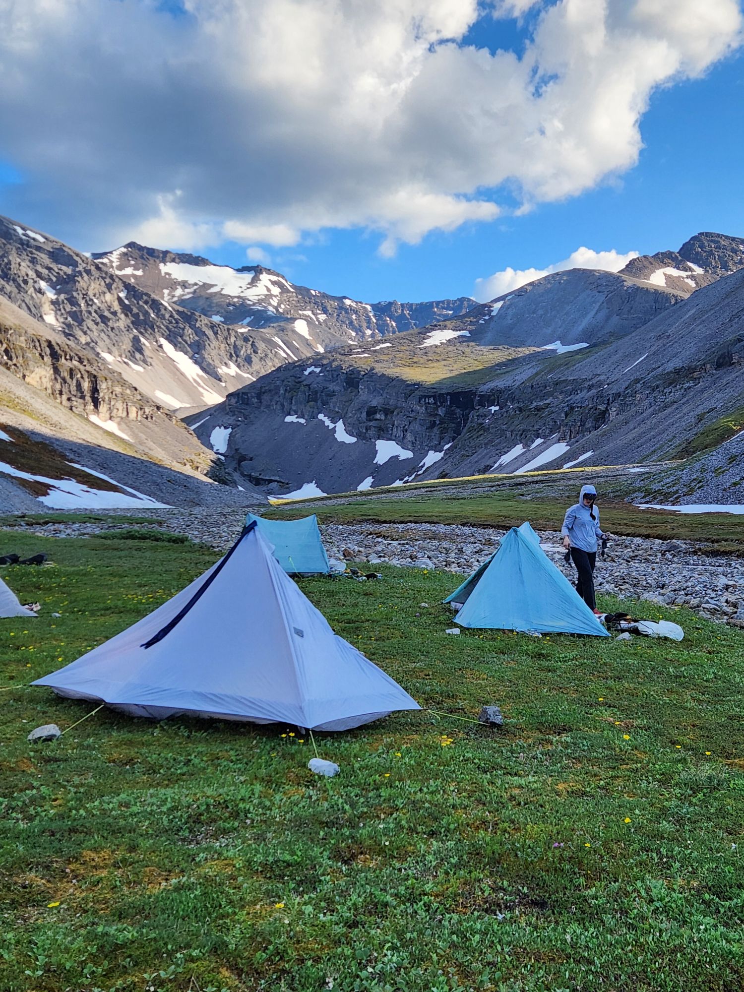 What about water crossings? There won’t be any dangerous water crossings on our route. We’ll bring waterproof socks we can put on if we end up walking up the braids of a creek, to keep our feet warm (the water is super cold).